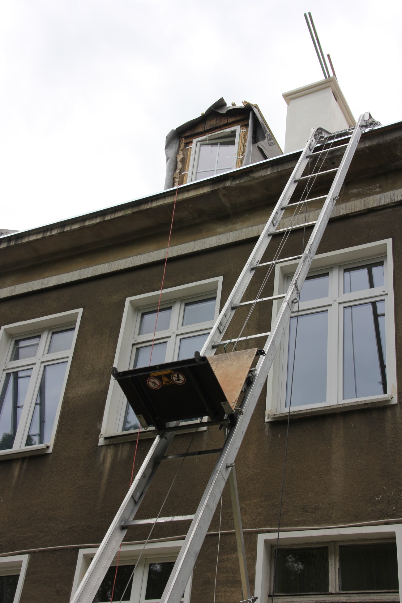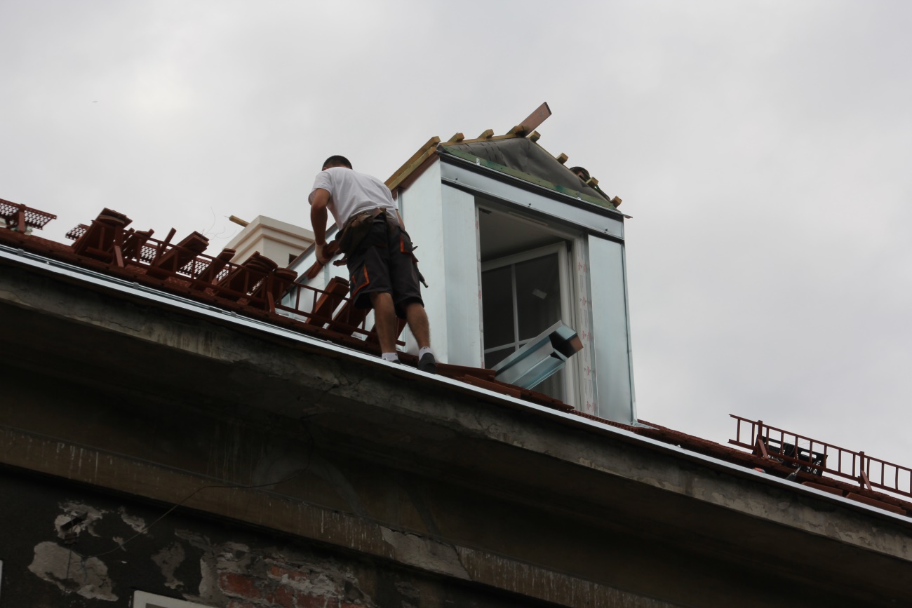 wyłazy dachowe, przeszklone, w szczytach budynku