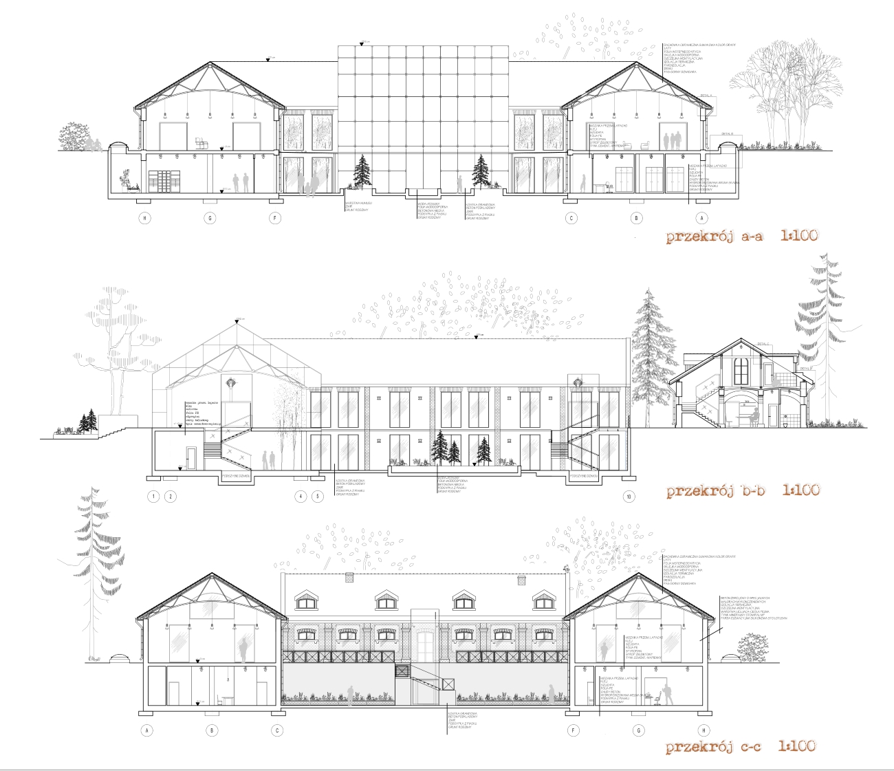 • część handlowa - księgarnia ekologiczna, kwiaciarnia oraz sklepik ogrodniczy, żywność ekologiczna z herbaciarnią