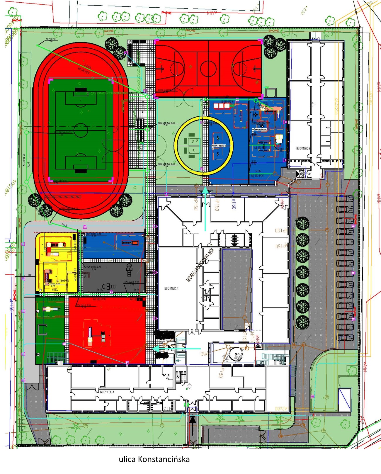 Projekt zagospodarowania terenu Szkoły Podstawowej, Liceum Francuskiego w Warszawie przy ulicy Konstancińskiej 13 obejmujący działkę geodezyjną  nr 9  z obrębu 1-05-16.