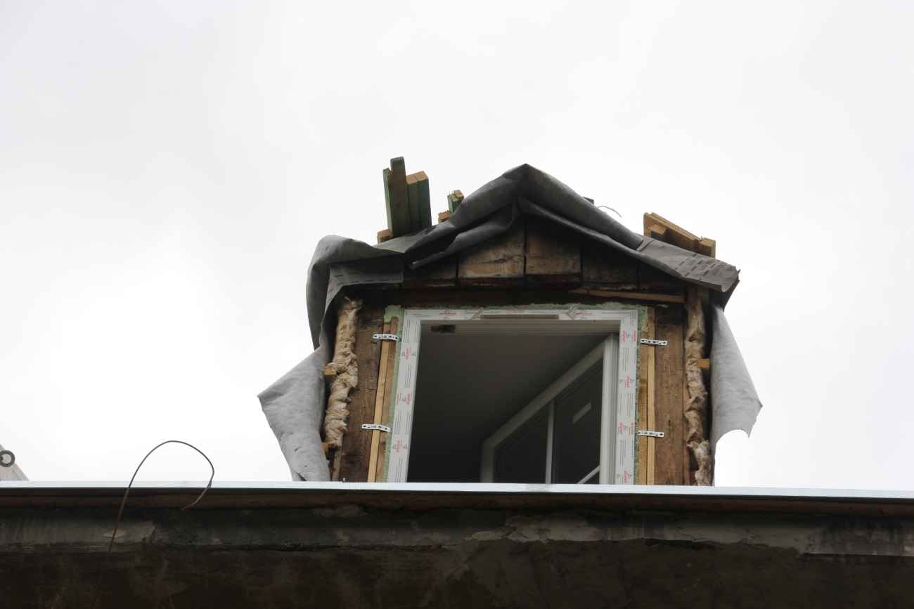 wyłazy dachowe, przeszklone, w szczytach budynku