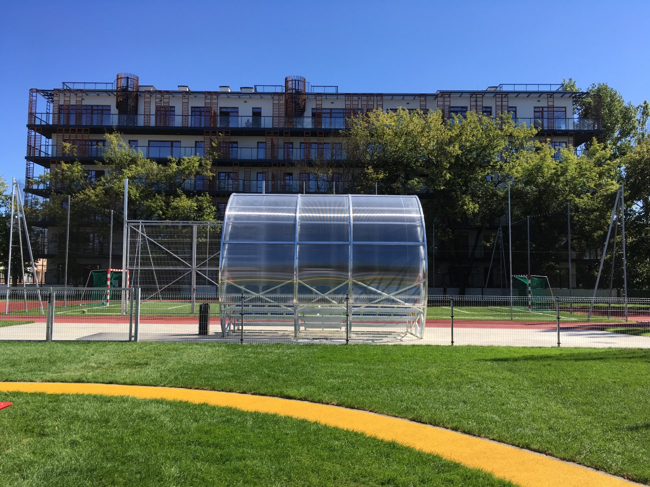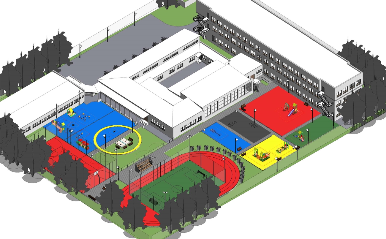 Projektowane zagospodarowanie działki obejmuje przede wszystkim urządzenie zaplecza sportowego oraz towarzyszącej mu infrastruktury wraz z przestrzeniami rekreacyjnymi dla użytkowników terenu – uczniów Szkoły Podstawowej oraz Przedszkola - jednostek Liceum Francuskiego w Warszawie - Lycée Français de Varsovie przy Ambasadzie Francuskiej.