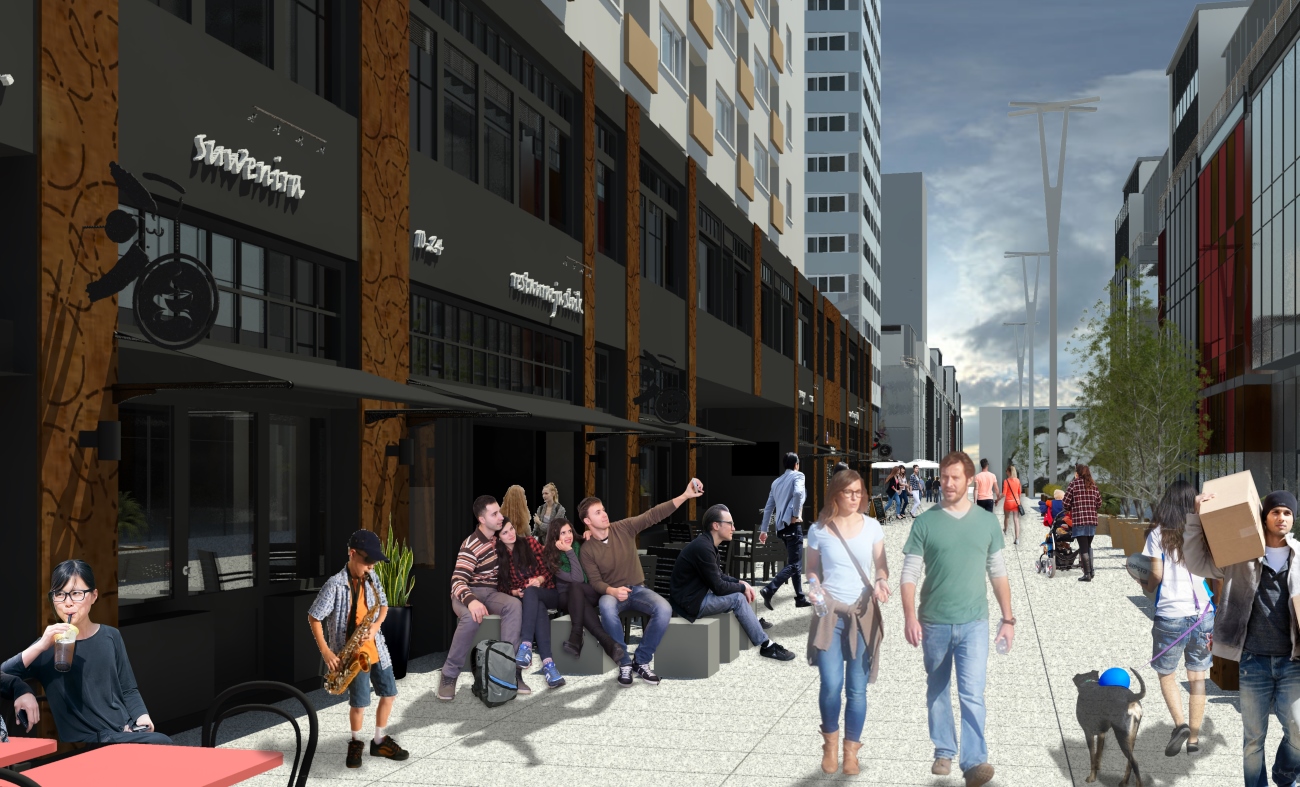 Inspirując się rozwiązaniami ze stolic europejskich pierwszy i niezgłoszony do konkursu pomysł ocieplenia przestrzeni ścisłego Śródmieścia Warszawy. Wykończenie - drewno.